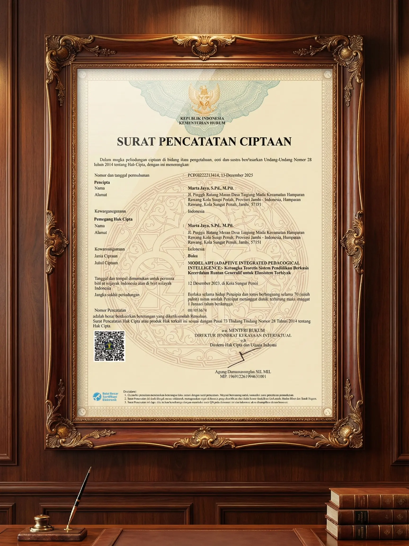 Pencatatan HAKI atas Model AIPI ini bukan hanya sebuah pencapaian legalitas, melainkan sebuah tonggak awal bagi visi besar transformasi pendidikan digital di Indonesia. Ke depan, model ini dirancang untuk terus berkembang menjadi standar sistem manajemen pembelajaran cerdas (Intelligent LMS) yang dapat diadopsi oleh berbagai kampus dan madrasah. Bayangkan sebuah masa depan di mana setiap santri memiliki tutor AI personal yang membimbing mereka belajar kitab kuning, dan setiap kampus memiliki sistem yang mampu mendeteksi potensi drop-out mahasiswa sejak dini. AIPI adalah langkah pertama menuju realisasi visi tersebut, menjadikan teknologi sebagai pelayan yang setia bagi kemajuan peradaban ilmu.